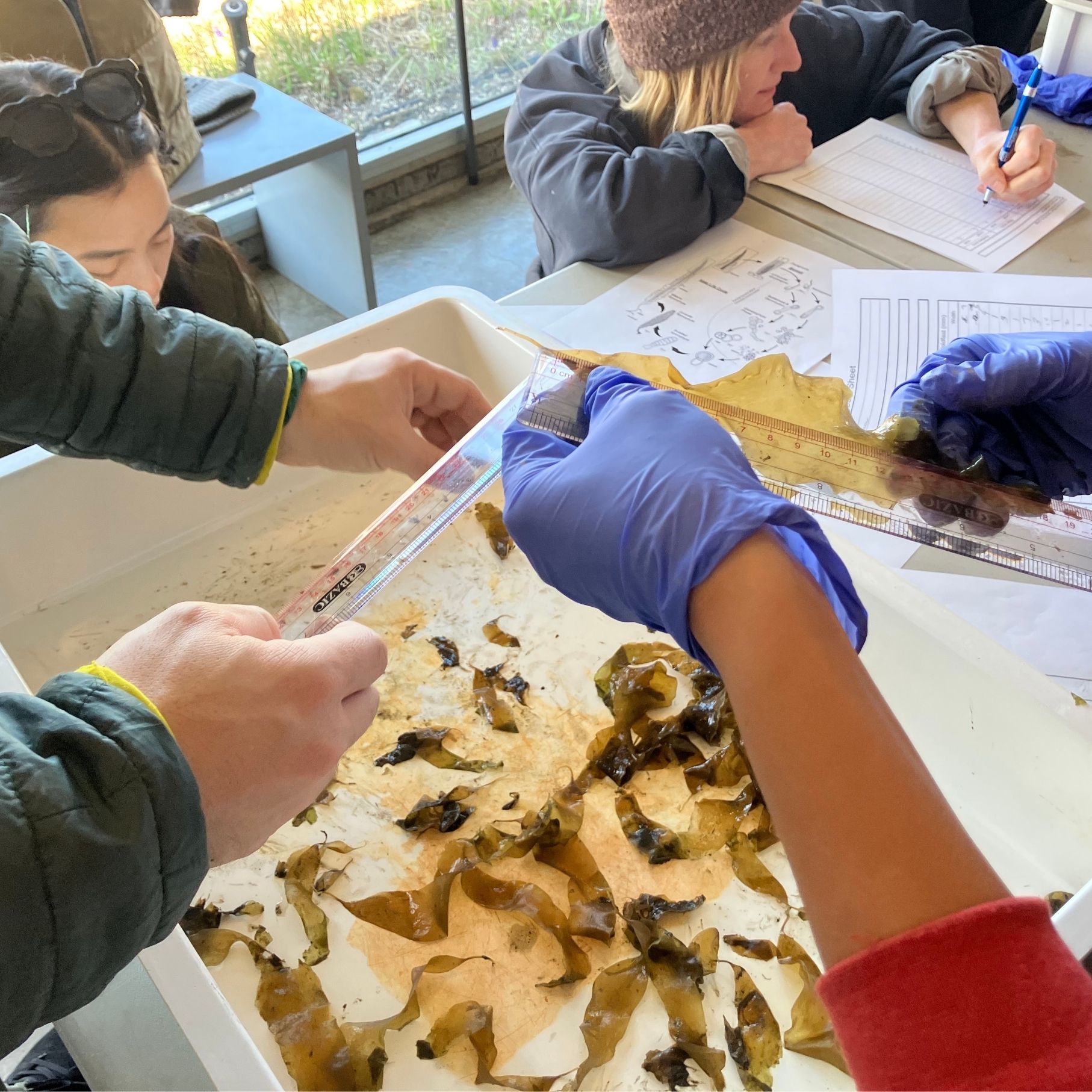 New York City faces increasing challenges from chronic flooding, rising tides, storm surge, pollution, and warming waters that threaten both human communities and marine ecosystems. In partnership with the Trust for Governors Island, Seaweed City developed New York City's first "seed-to-soil" seaweed lifecycle laboratory, where baby kelp is grown in our nursery, planted in the Buttermilk Channel's high-energy waters, then monitored, harvested, and processed for a variety of community science experiments. These experiments include soil amendment workshops, bioplastic demonstrations, and art projects—closing the loop on the full kelp lifecycle.